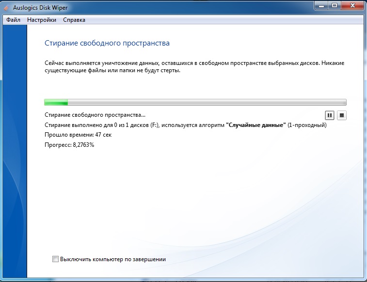 5. Процесс стирания данных очень длительный. Если технически это возможно - надо дать пользователю возможность выбора не только диска целиком, но и отдельной папки (нескольких папок) в нем. Как правило, человек знает, в какой папке у него хранилась «секретная» информация.