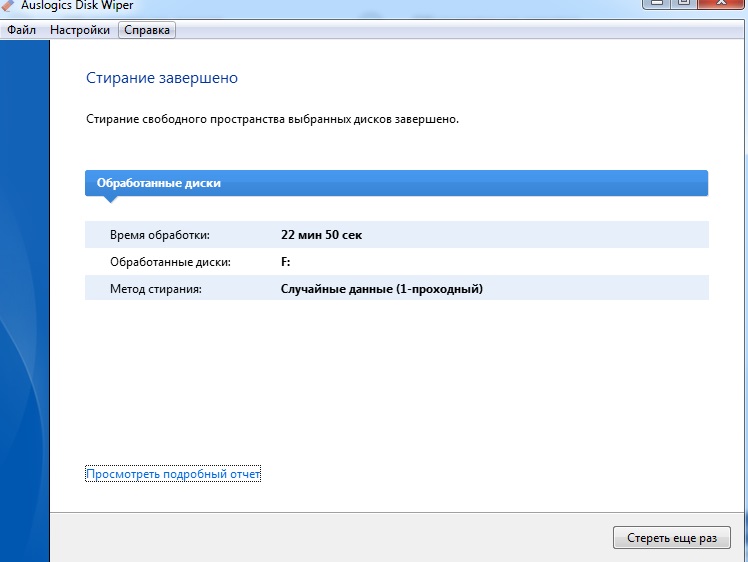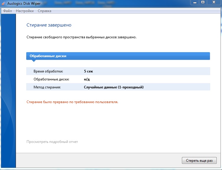 4. Название кнопки «Стереть еще раз» говорит пользователю, что программа Disk Wiper работает ненадежно. Так как после ее работы, рекомендуется стереть данные еще разок. Так сказать, чтобы уж наверняка...