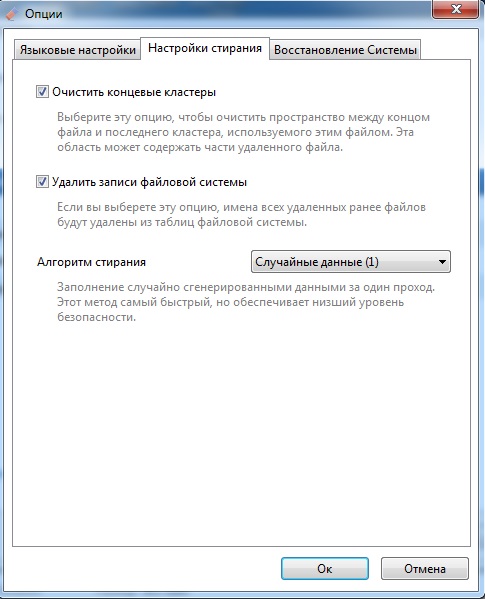 1. Это очень важная опция. Причем, по умолчанию она отключена. Это означает, что в некоторых случаях работа программы попросту бесполезна - якобы стертые данные на самом деле можно восстановить! Эта опция обязательно должна находится на первом экране программы. Либо, ее надо по умолчанию сделать включенной.
